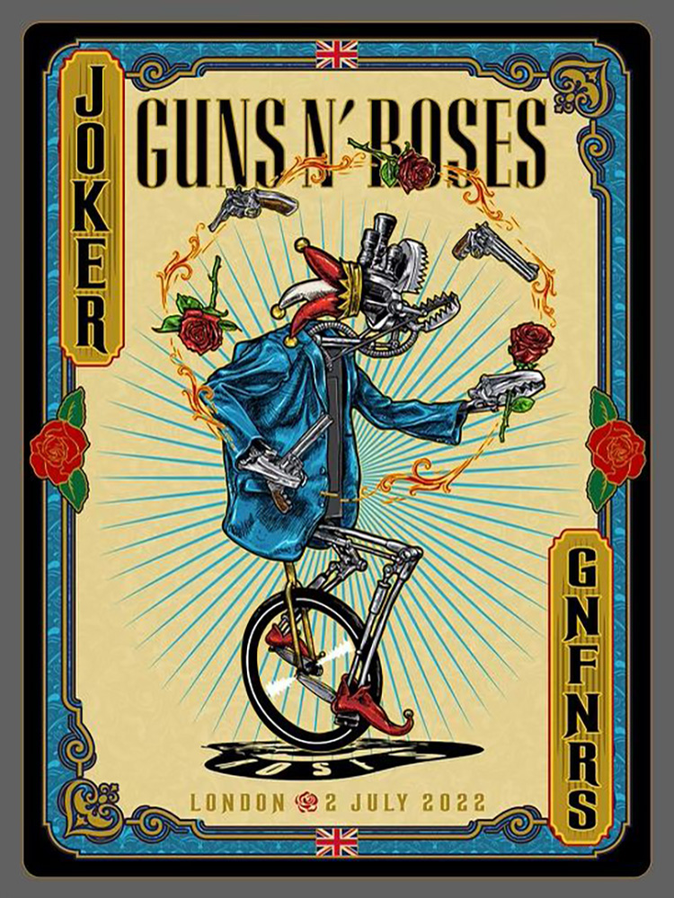 The Nightrain robot is affectionately rendered as the "Joker" from a royal deck of playing cards.