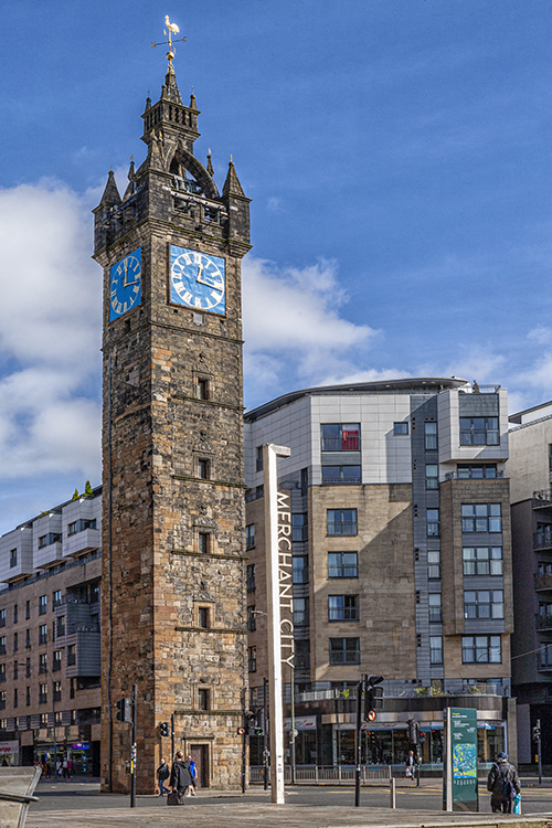 The lithograph also features Glasgow's Tolbooth Steeple, the last