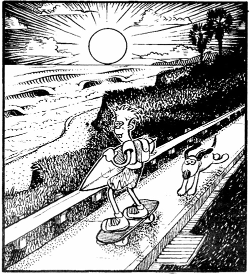 An homage to the surfer character Wilbur Kookmeyer by artist Bob Penuelas. Also featured are Axl's iconic Converse shoes and the vintage UZI Suicide logo.